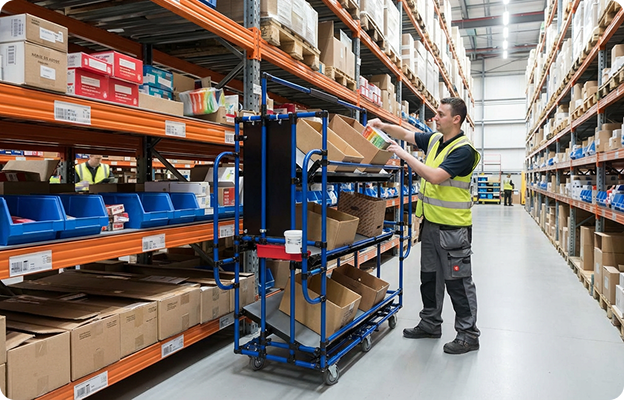 Learn how picking and packing connect in a large-scale warehouse setting.